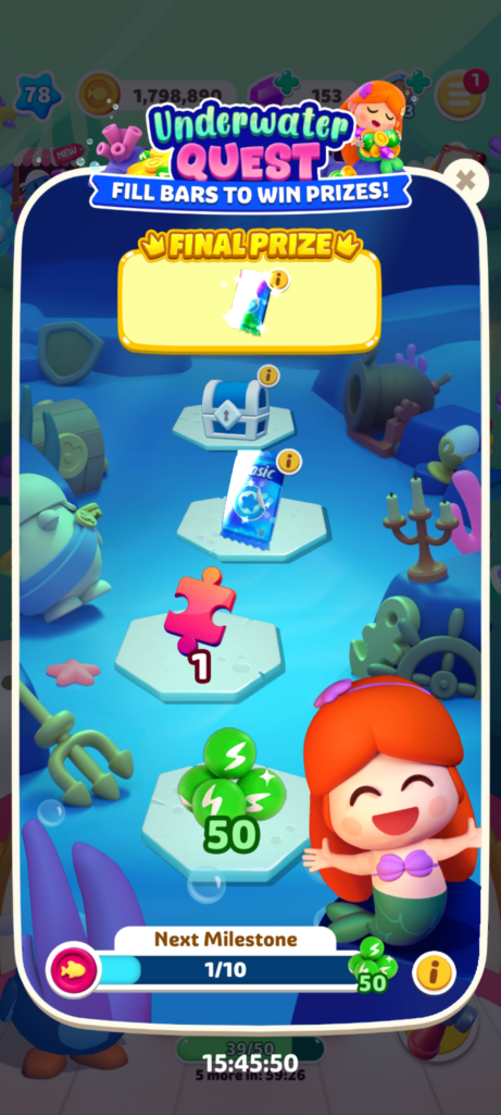 定期的に開催されるイベントです。イベント限定の魚(今回は人魚)を釣ることでメーターが溜まっていきます。進めるほどボーダーと報酬が上がっていきます。
