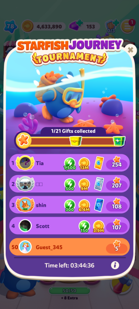 ほぼ常時やっているイベントです(デイリーリセット)。ほかのプレイヤーと争いランキング上位を目指すイベントです。基本的には特定の魚(Steal魚、Blast魚)を釣ることでメーターが溜まっていきます。