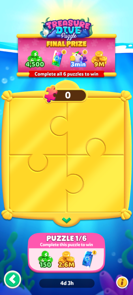 不定期に開催されるイベントです。パズルのピースを手に入れることで1マス開けることができます。クリアすると次のパズルに移ります。