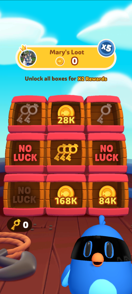 箱の中には追加のカギが入っていることもあるので、それを引けば全部のコインを得ることができます。