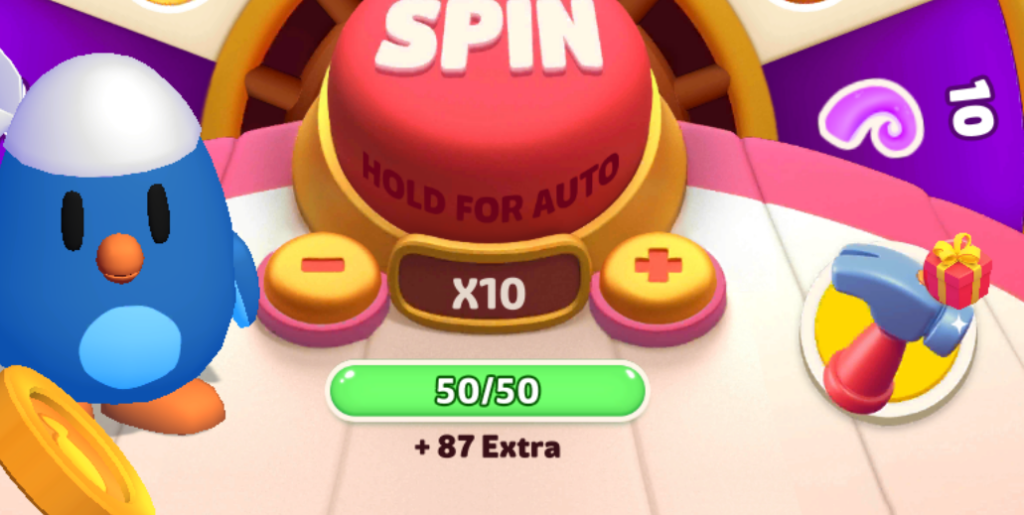 基本的×10くらいの倍率をかけてのスピンがおすすめです。踏んだマスの報酬も10倍になります。
