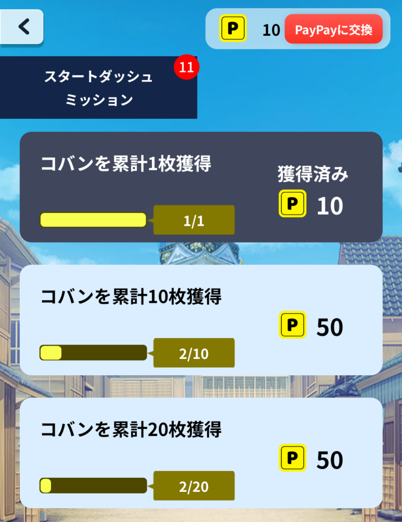 • 小判10枚 / 20枚 / 30枚 → 各50ポイント