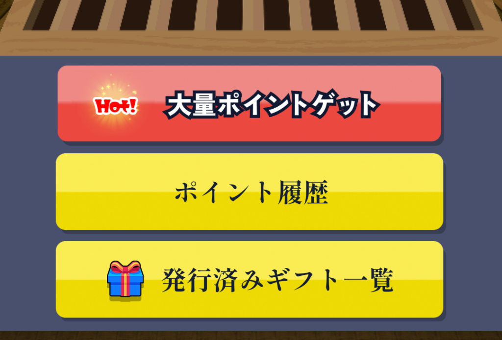 ゲーム内にある「大量ポイントGET」のバナーから、外部サービスの案件を利用することでポイントを獲得することができます。