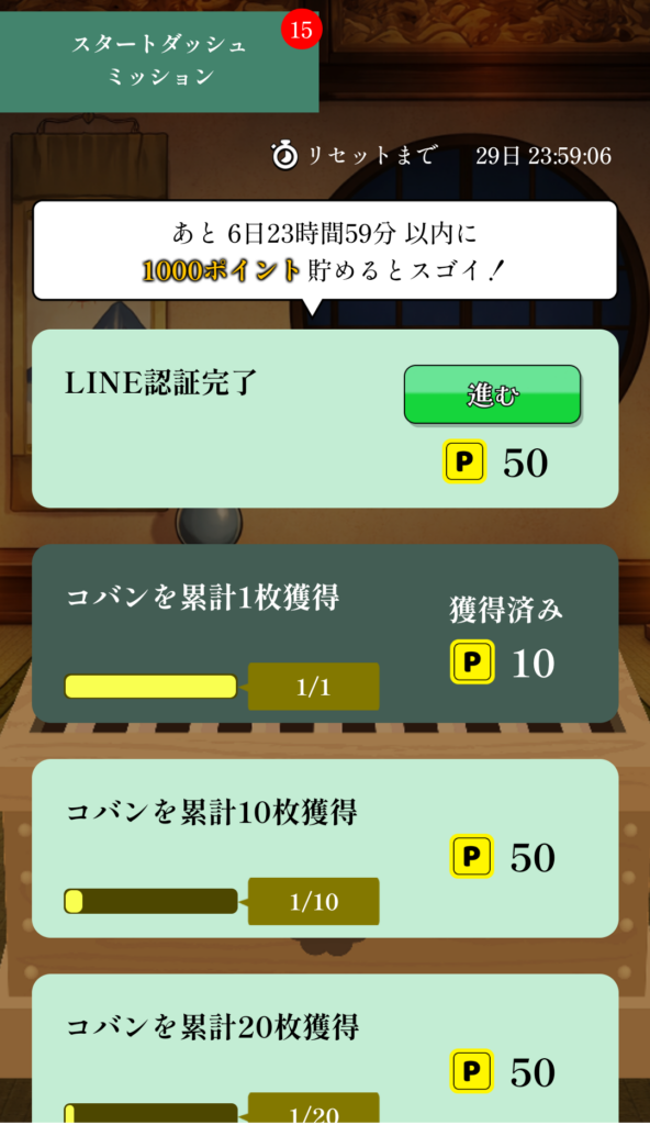 ポイ活案件では、小判を直接ポイントに変換するのではなく、ミッション達成や大量ポイントバナーでの条件達成によってポイントを獲得する仕組みになっています。